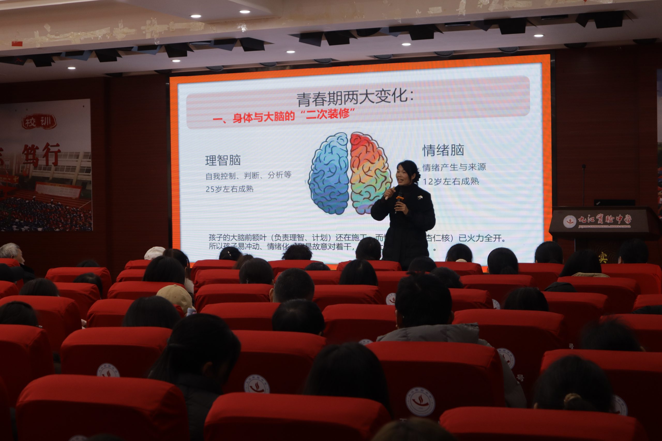 在九江实验中学、九江市第六中学举行的专场讲座中,江西省家庭教育学会首席讲师、国家二级心理咨询师、吉水县家庭教育指导中心副理事长严湛桥老师为初中生家长带来了题为《做知心父母 陪孩子度过青春期》的专题辅导。